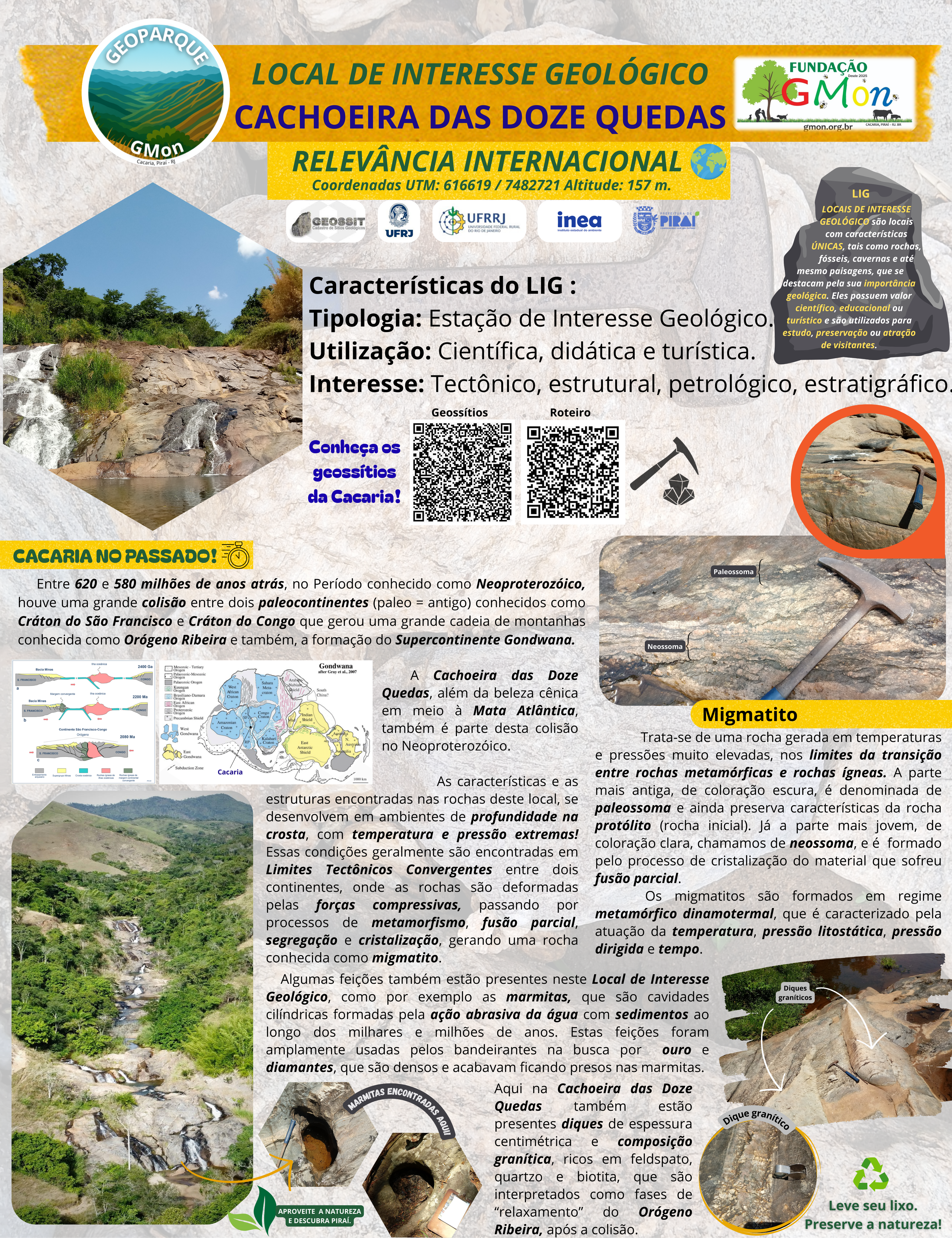 Painel contendo informações, com linguagem acessível, sobre a geologia e seus elementos na Cachoeira da Escadaria.